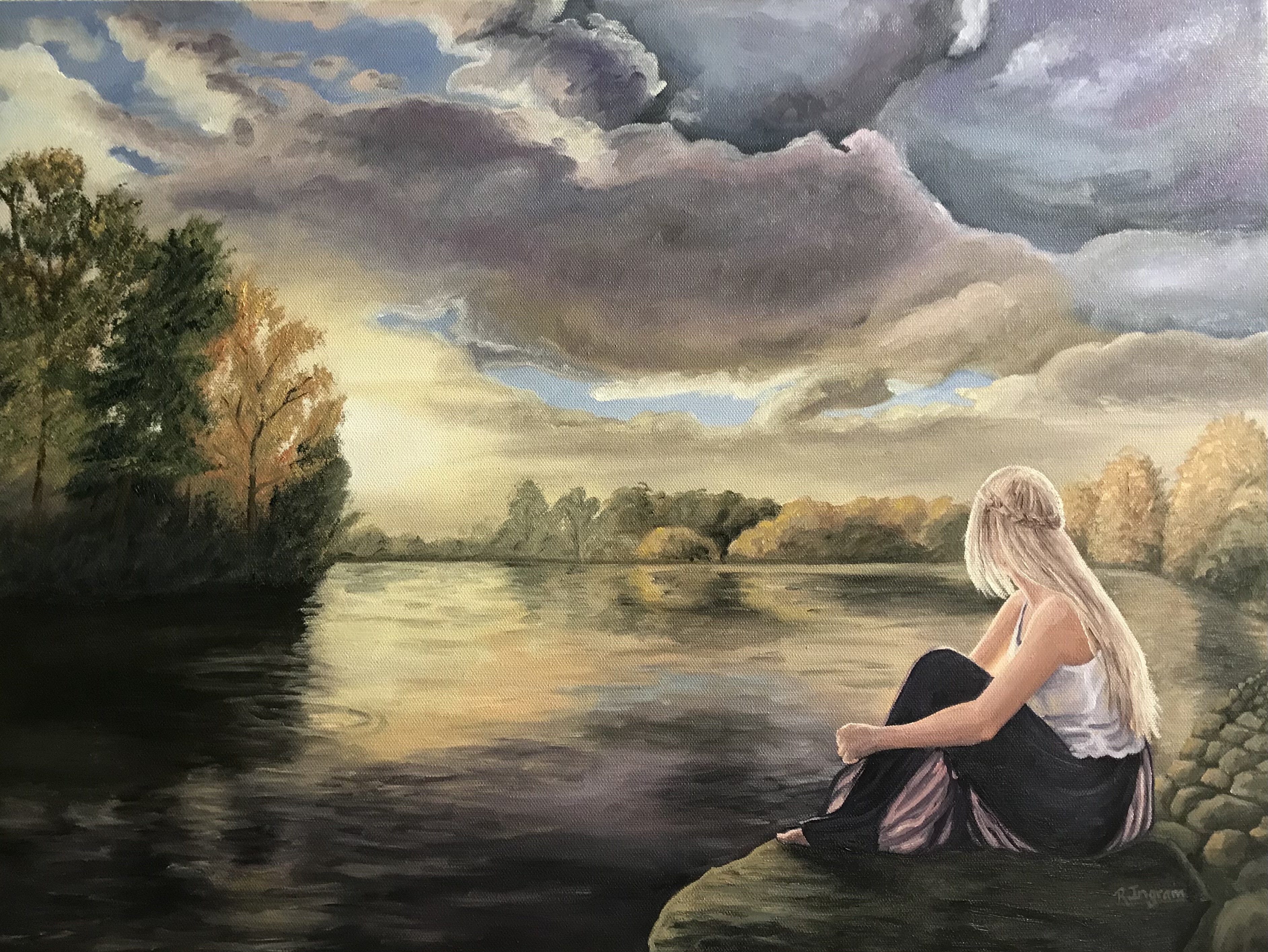 Rachel Ingram is a fine artist who works primarily with water-soluble oil paint, watercolor, and water-marbling. You may also find her at a party providing face painting. Her art is inspired by personal experiences and she strives to convey a feeling or story with each work. Even during difficult seasons of her life, she tries to focus on feelings of joy, peace, and hope which is evident in the happy saturated colors she uses in most of her work.